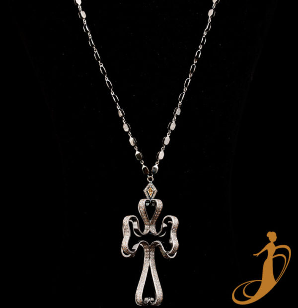 An extremely devout, religious man, it is said that Gaudi carried a cross with him at all times. A total of 586 single cut champagne diamonds, together with a single orange fancy kite shaped diamond combine in this homage to the eye-catching cross that site outside Gaudi’s Park Guell house. The chain honours Gaudi’ as the champion of wrought ironwork and echoes a section of the balcony at Park Guell. The chain is directly inspired by this wrought iron work and the colour is replicated using black rhodium on an 18k gold base.